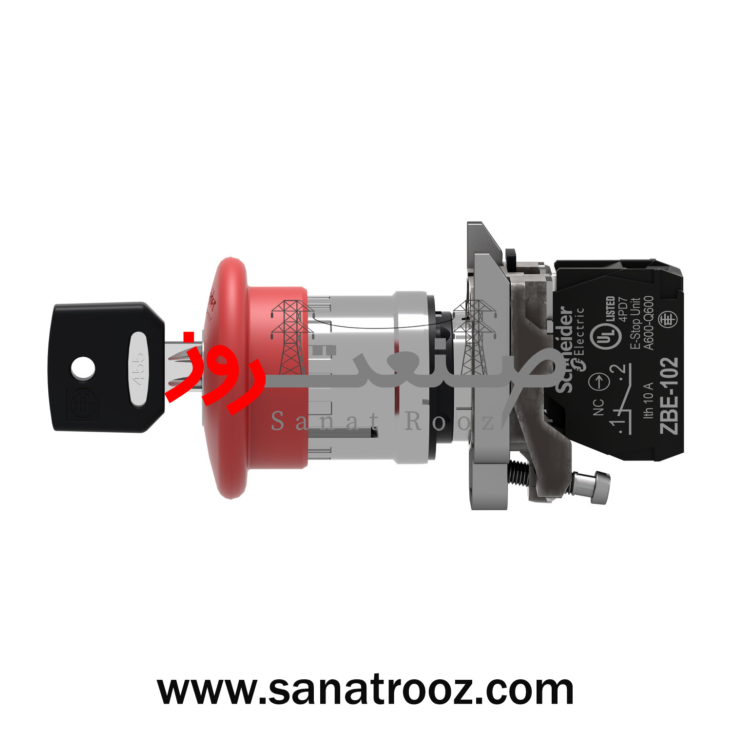 امرجنسی قارچی فلزی کلیددار با کنتاکت NC اشنایدر الکتریک