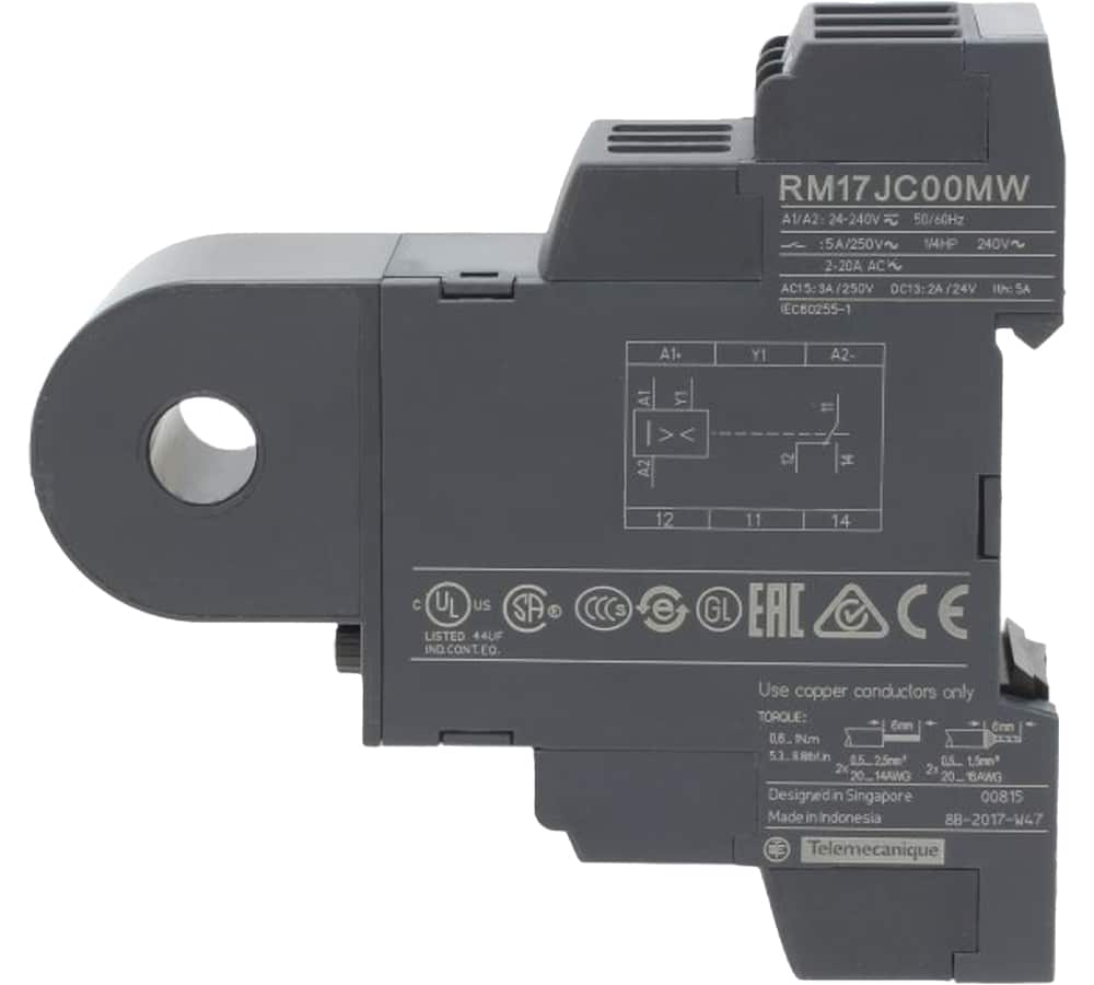 ترجمه و طراحی جدول مشخصات رله کنترل جريان رنج 20 تا 2 آمپر اشنایدر الکتریک (RM17JC00MW)