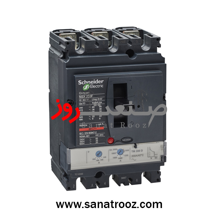 کليد اتوماتیک سه پل 200 آمپر 36 کیلو حفاظت TM-D اشنایدر مدل LV431631