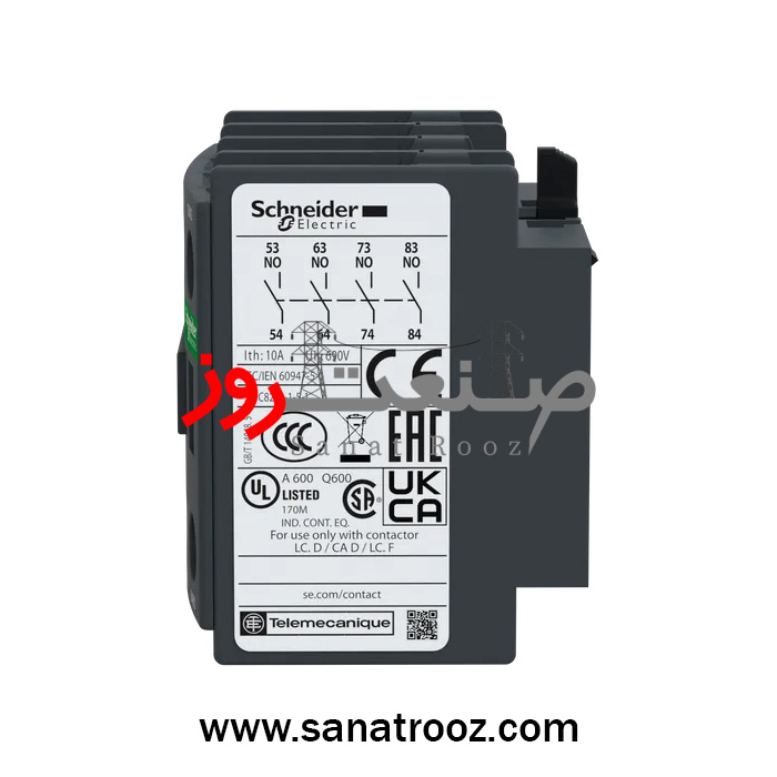 کنتاکت کمکی 4NO کنتاکتور سری CAD, F, D اشنایدر الکتریک با کد فنی LADN40، یکی از تجهیزات جانبی کلیدی در سیستمهای برق صنعتی است که برای افزایش قابلیتهای کنترلی کنتاکتورها طراحی شده است. این قطعه با داشتن چهار کنتاکت باز (4NO) نقش مهمی در ارسال فرمانهای کمکی و مانیتورینگ وضعیت کنتاکتور ایفا میکند.